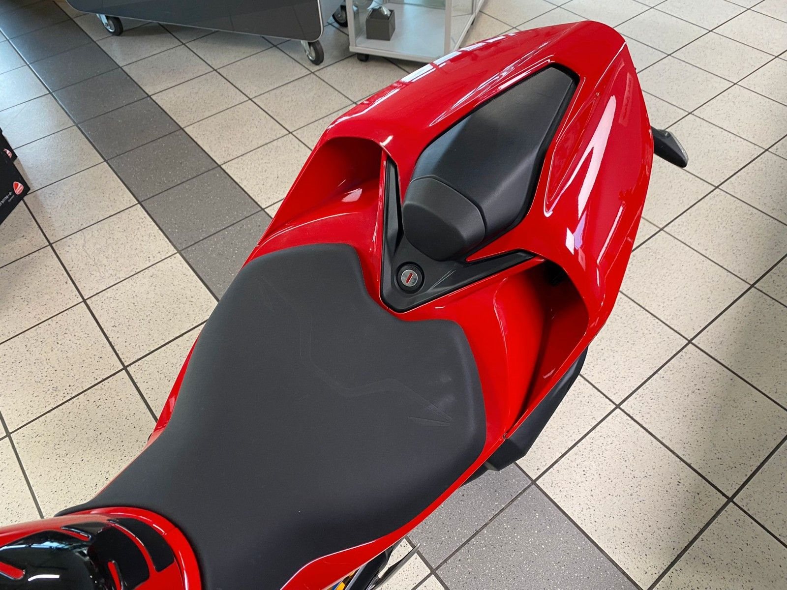Ducati Quick Shift (DQS) Up/Down 2.0, Voll-LED-Scheinwerfer mit Daytime Running Light (DRL), automatische Blinkerrückstellung, Lithium-Ionen-Batterie, Ducati Power Launch (DPL), Pit Limiter, Coming-Home-Funktion, Sachs-Lenkungsdämpfer, Einsitzer-Konfiguration, Öhlins Fahrwerk