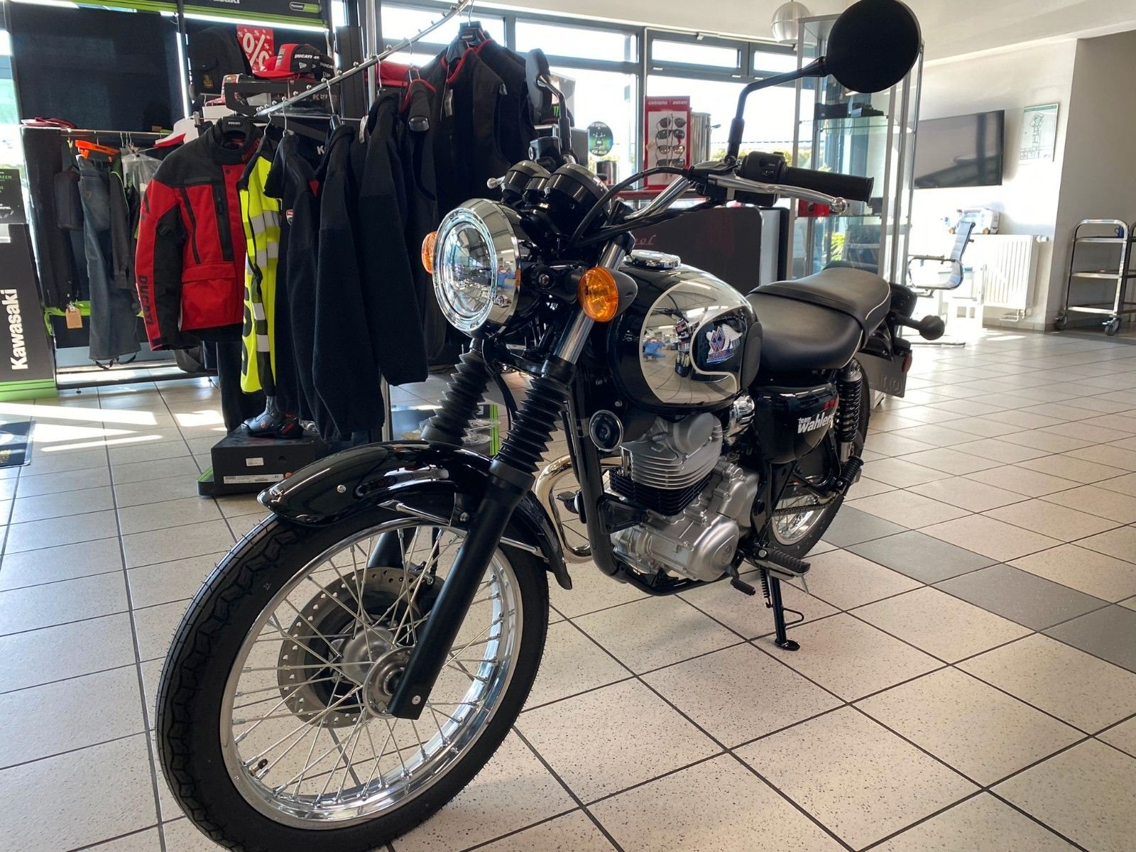 Kaufabwicklung: Nach Vertragsabschluss werden alle vereinbarten Zusatzleistungen wie z.B. 35 KW / A2 - Leistungsreduzierungen, Eintragungen, Inspektion, TÜV-Abnahmen durch unser Werkstatt-Fachpersonal durchgeführt, dieses erfordert allerdings ein wenig Zeit. Zwischen dem Vertragsabschluss und der Auslieferung des Fahrzeuges liegt im Schnitt ca. eine Kalenderwoche. Günstige Finanzierung: Die Bezahlung erfolgt entweder Bar bei Übergabe oder vorab per Überweisung. Eine Finanzierung ist selbstverständlich möglich, mit oder ohne Anzahlung, Laufzeiten bis 120 Monate - auch mit Schlussrate.Für eine Anfrage benötigen wir Ihren aktuellen, gültigen Personalausweis, bitte sprechen Sie uns an. Mögliche Inzahlungnahme: Gerne erstellen wir Ihnen ein individuelles Inzahlungnahme-Angebot für Ihr Fahrzeug. Hierfür muss das Fahrzeug entweder vorab durch uns besichtigt werden oder wenn dieses nicht möglich ist, benötigen wir eine detaillierte Beschreibung, Kopie der Zulassung / ZBI sowie aussagekräftige Fotos in entsprechender Auflösung. Gewährleistung/Garantie: 24 Monaten Werksgarantie für Neufahrzeuge - bei Gebrauchtfahrzeugen 12 Monate Händlergewährleistung oder 12 Monate CG-Bike Garantie gegen Mehrpreis. Anlieferung bundesweit: Wir liefern Ihnen Ihr Motorrad bundesweit durch unsere Partnerspedition gegen einen geringen Aufpreis an. Wir vereinbaren dann mit Ihnen einen Liefertermin für das Fahrzeug. Der Bahnhof Scheeßel ist nur 5 Gehminuten von unserem Geschäft entfernt. Das Auto- & Motorrad Team Wahlers GmbH - Ihr Kawasaki-und Ducati-Vertragshändler Mitte Hamburg-Bremen an der B 75.Kymco-Vertragshändler & Triumph-Servicehändler.Offizieller BOSCH Car-Service. Autos, Motorräder und mehr.