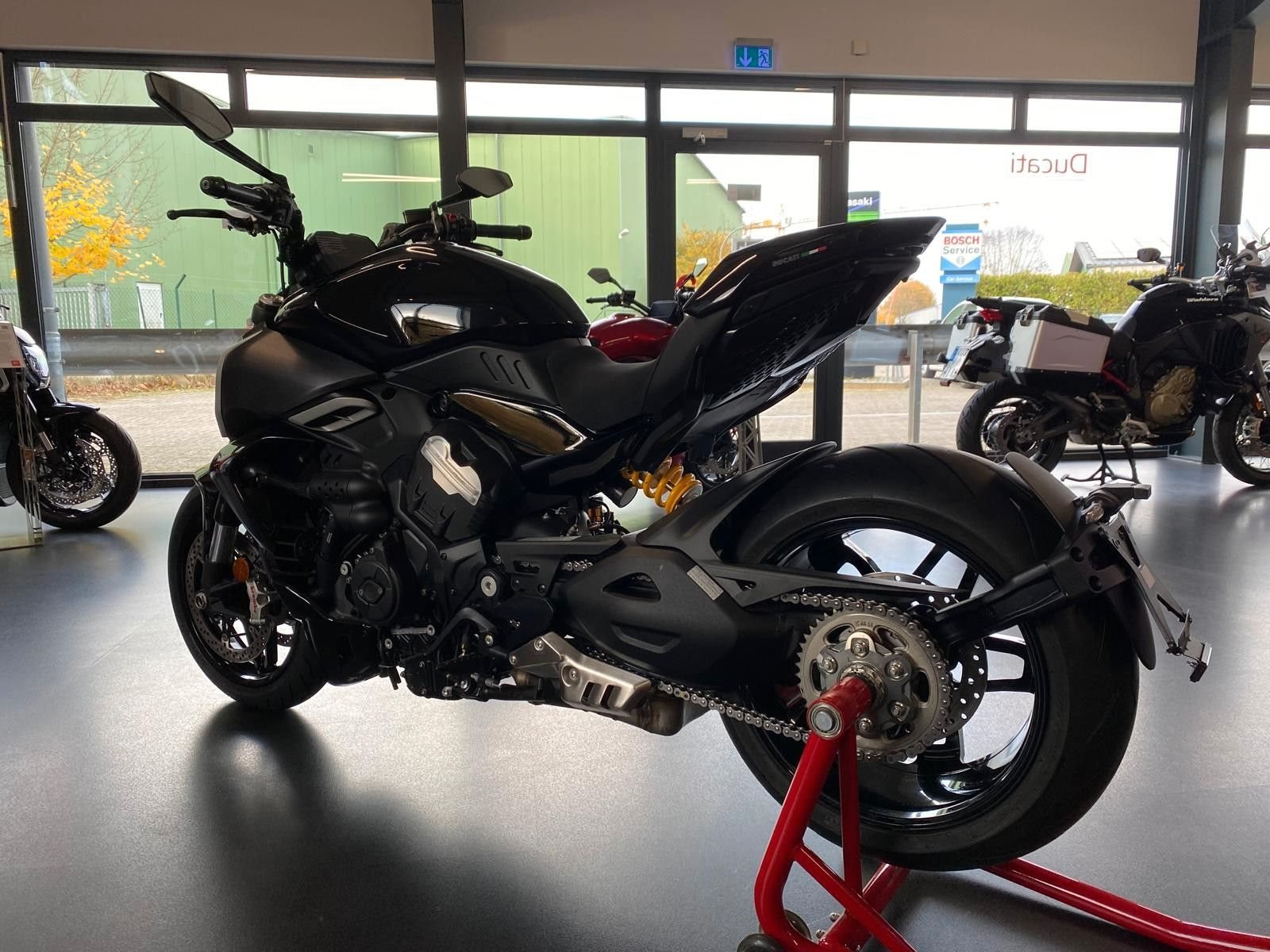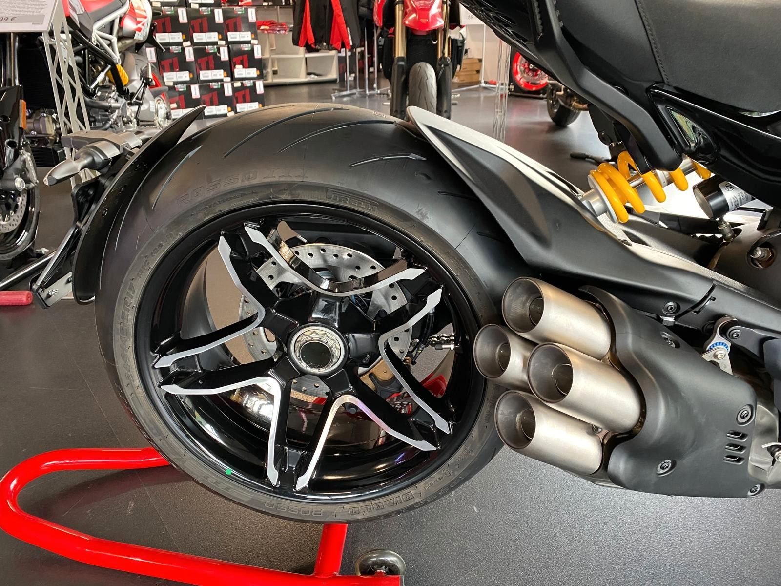 -Ducati Fahrmodi -Ducati Traction-Control -Ducati Quick-Shifter -Ducati Kurven ABS -Ducat Multimedia System -Ducati Power Launch -Ducati Turn-By-Turn Navigation / Vorbereitung -TFT Display -240?er Hinterreifen -LED Scheinwerfer -Dynamische Blinker -Heck LED Matrix - Sonderfelgen X-Serie