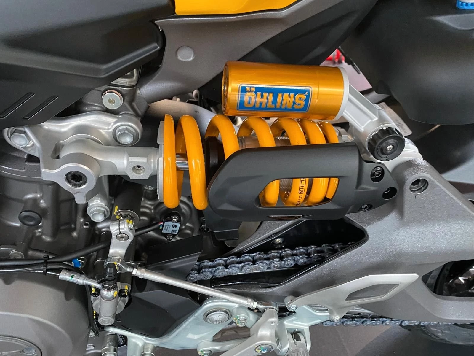 Ducati Quick Shift (DQS) Up/Down 2.0, Voll-LED-Scheinwerfer mit Daytime Running Light (DRL), automatische Blinkerrückstellung, Lithium-Ionen-Batterie, Ducati Power Launch (DPL), Pit Limiter, Coming-Home-Funktion, Sachs-Lenkungsdämpfer, Einsitzer-Konfiguration, Öhlins Fahrwerk