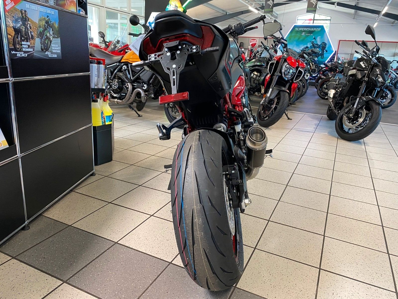 Die brandneue Z900 evolutioniert die Sugomi-Philisophie. Mit ihrem markanten, aggressiven Sugomi-Design, ihrer erstklassigen Ausstattung und der geballten Power des 948-cm-Motors setzt die Z900 ein Statement auf jeder Straße.